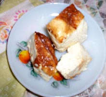 We stayed over at Puri that night and on our way back next morning we stopped somewhere near Neemapara (I hope I got the place right) to have Chennajhilli. Now, there is something I need to elaborate. Odiya sweets predominantly have Chenna in them which is like a stage in between cottage cheese, cheese and cream. It’s yummy even in its purest form. They then burn it, steam it or bake it to make various sweets. So, Chennajhili was just steamed chenna.
