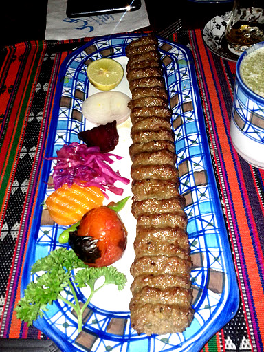 Kiran & Sunny were just super elated and didn’t know what all to order. For vegetarians, there is not much of a choice. I chose to order a Veg. Kebab Platter. The boys ordered Kebab – e – Loghmeh (lamb) and Chelo Kebab (Chicken). They went bonkers eating it!